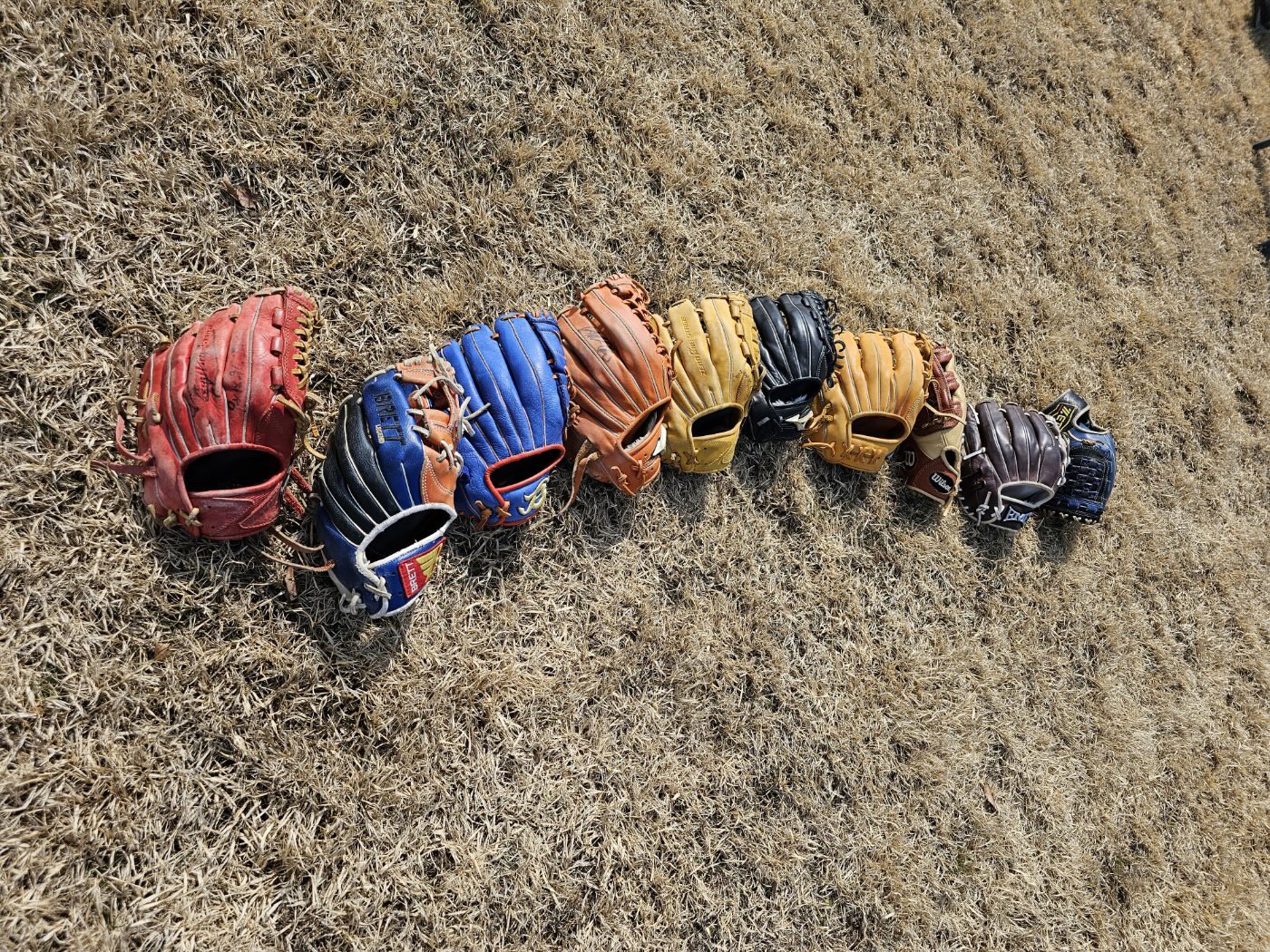 필드 장갑: 외야 수비에서는 뜬 공을 잡는 것이 중요하기 때문에 글러브 길이가 길고 깊이가 12.5~13인치 이상인 글러브를 자주 사용한다. 그래서 긴 장갑은 필수인가요? 라는 질문을 하면 글쎄요. 길이가 길수록 무게가 더 나가고 사용성이 떨어진다는 점에 유의해야 한다. 참고로 공유하자면 국내 프로 선수들은 계약 글러브에서 12.75인치나 13인치를 자주 보는데, 빅리그에서도 12.75인치를 흔히 쓴다고 한다. (내가 썼다고 해서 아이들에게 12.75인치 필드장갑을 사는 부모나 어른들은 없었으면 좋겠다.)